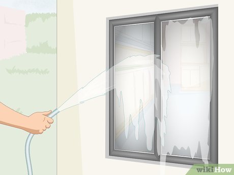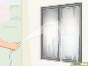 - The easiest way to do this is with a garden hose. If you don’t have a garden hose or you can’t reach all of the windows with your hose, then fill a bucket with water from the faucet and splash it onto the windows to rinse them.